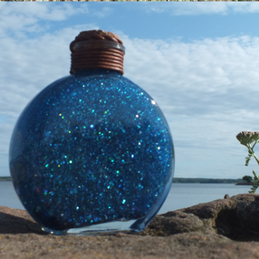 Charge up the potion by gently swirling it during those times that you feel most peaceful and calm. The time of day varies from person to person, but typically will involve a quiet place of gentle solitude. Once charged, keep your potion handy and when life starts to get a little too hectic, noisy and overwhelming give it a swirl and stare into the deep, blue depths. Focus on the endless motion of the waves in your bottle and breathe until you are drawn a little bit out of the chaos and can recenter yourself.